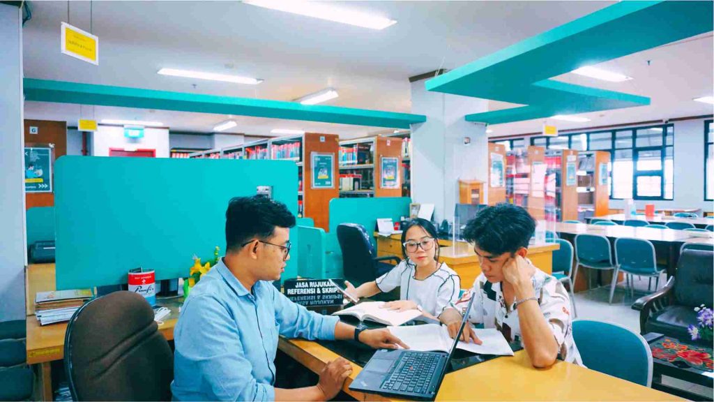 - Membantu pemustaka menelusur koleksi referensi (karya mahasiswa, karya dosen, buku-buku referensi, terbitan berkala dll)
