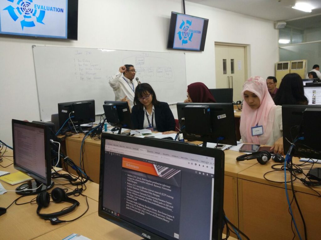 Di hari pertama dan kedua, peserta diberikan pelatihan mengenai keterampilan dasar literasi informasi. Di hari ketiga dan keempat, pelatihan mengenai keterampilan dasar pedagogi. Kegiatan evaluasi dilakukan dalam bentuk tes teori dan praktik. Tes teori-di hari ketiga, dilakukan secara online menggunakan media pembelajaran kelas virtual “Edmodo”. Evaluasi dalam bentuk praktik dilakukan di hari keempat. Setiap peserta melakukan praktik mengajar (micro teaching). Kegiatan evaluasi dilakukan untuk mengetahui sejauh mana peserta pelatihan memahami dan mampu mengaplikasikan materi yang diberikan. Diberikan apresiasi kepada peserta yang menampilkan presentasi dengan baik.