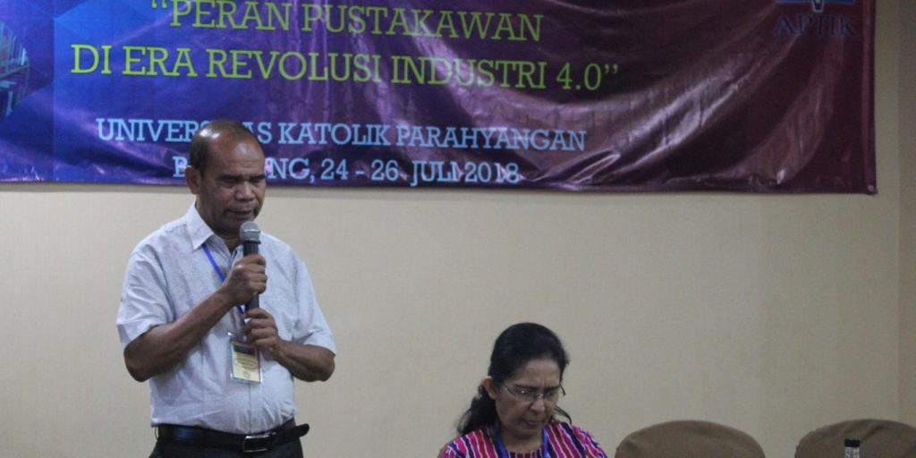 Gaung era industri revolusi 4.0 dikenal juga dengan era Cyber Physical System (CPS), Internet of things, networks, semakin hari semakin sering terdengar dan mempengaruhi bidang gerak manusia, baik bisnis, rumah sakit, perbankan juga dunia pendidikan. Apakah lingkungan kerja unit kerja perpustakaan dan pustakawan juga terpengaruh dengan gerak revolusi industri khusus di bidang informasi yang demikian cepat? Apakah peran pustawakan akan terdisrupsi dengan semakin mudahnya manusia menemukan informasi yang ada di seluruh dunia hanya dengan sekali menekan tombol enter? Tren pengembangan pustakawan seperti apa yang harus dilakukan di era revolusi informasi? Mampukah pustakawan, khususnya pustakawan perpustakaan perguruan tinggi, menjadi mitra belajar, mengutip istilah ibu Susi pustakawan UAJY, pemustaka di perguruan tinggi masing-masing?