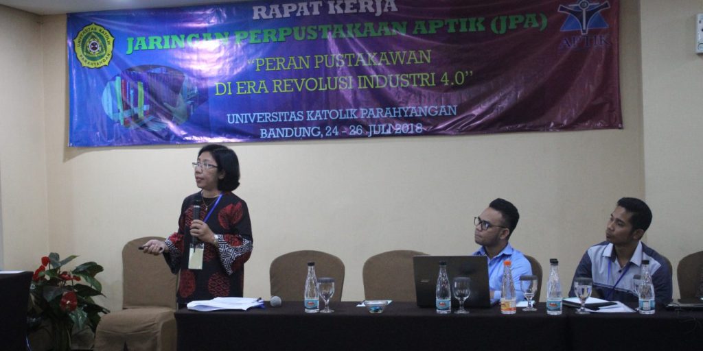 Pertanyaan-pertanyaan yang muncul tersebut, menggelitik para pustakawan yang tergabung dalam Jaringan Perpustakaan APTIK (JPA) sehingga menyempatkan untuk berdiskusi mengenai “Peran Pustakawan Di Era Revolusi Industri 4.0” dalam kegiatan Rapat Kerja JPA 2018, yang telah dilaksanakan di Bandung, pada 24-26 Juli 2018.