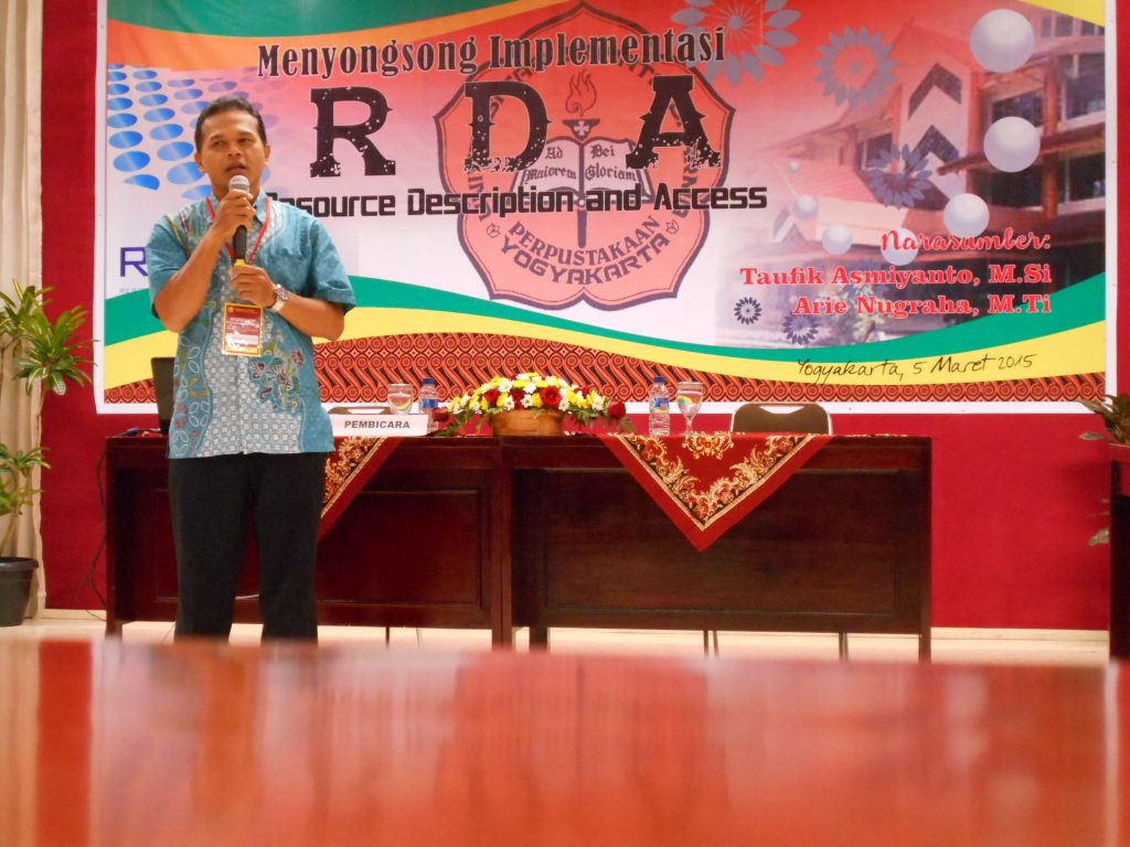 Workshop “Menyongsong Implementasi RDA” diselenggarakan di Perpustakaan Universitas Sanata Dharma Yogyakarta, diikuti oleh 25 pustakawan perguruan tinggi dalam rangka menyiapkan diri menjelang implementasi RDA di tahun 2016.